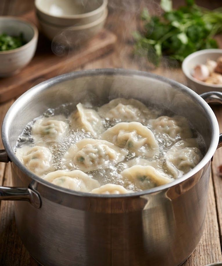 ★注意:水要夠多,要讓水餃有空間均勻滾動受熱,水餃才會好吃。